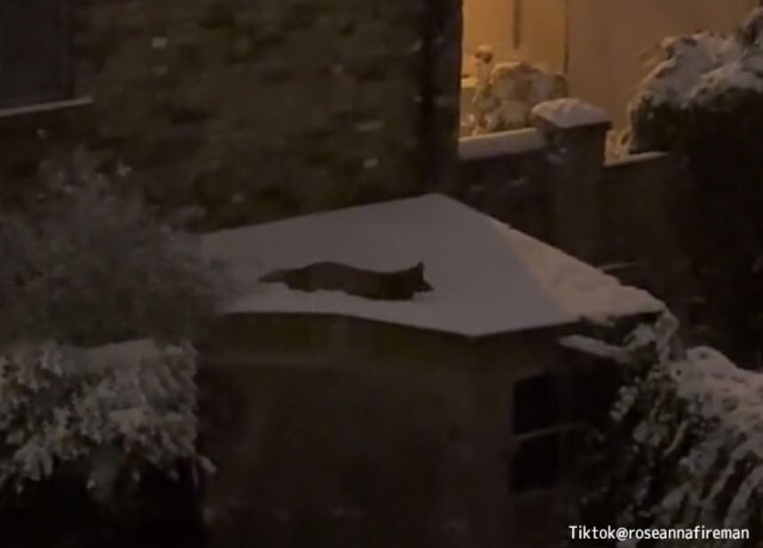 ある雪の日、イギリス・ロンドンで、屋根の上に積もった雪の上で寝そべっている1匹のキツネがいた。