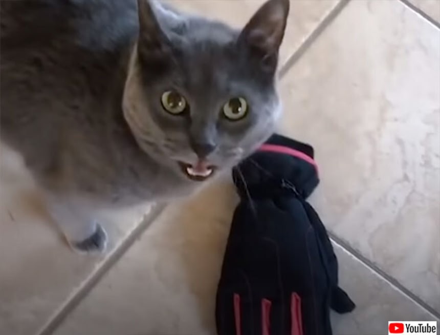 ママンにブラジャーを運ぶのが日課となった猫