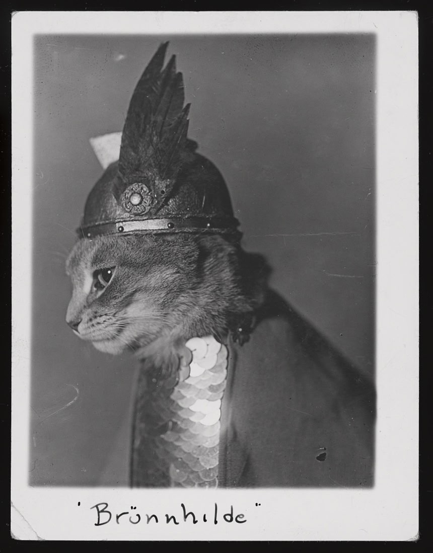 1936年に撮影されたブリュンヒルデに扮した猫