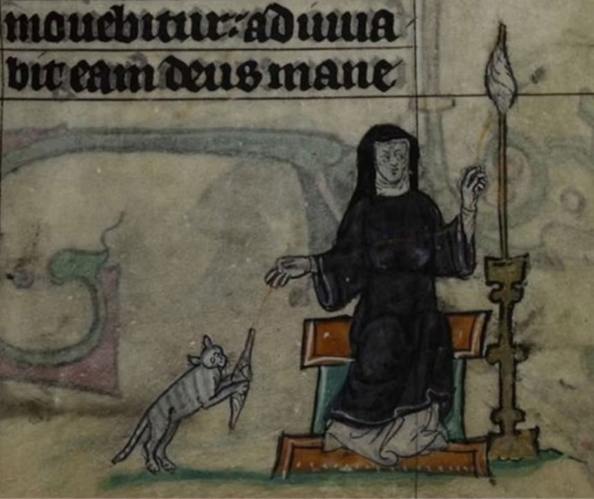 それがわかる中世の写本はたくさんあり、例えば、尼僧と猫を描いた小さな装飾や、時祷書の余白にも頻繁に猫の落書きが登場する。