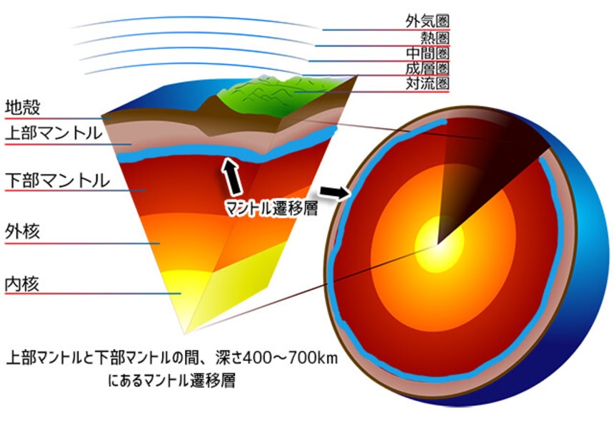 この画像を大きなサイズで見る地球をどんどん掘り進めていくと、地殻、マントル、外核、そして中央部には内核が存在する。現在この内核に異変が起きている可能性があると言う。