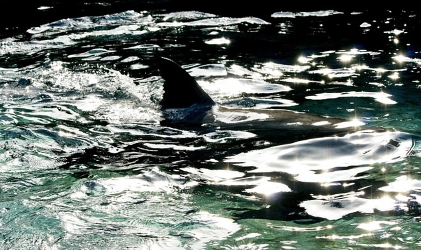 陽が沈み始め、サメがディランさんの近くを泳いでいるのが見えた。