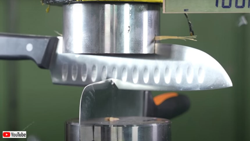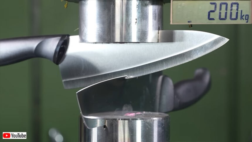 まああれだ、知っての通り包丁はただ押し切るだけのものでもないし、油圧プレスほどの剛力で包丁を使う人もいないだろうから、あくまでネタとして楽しんでほしい。