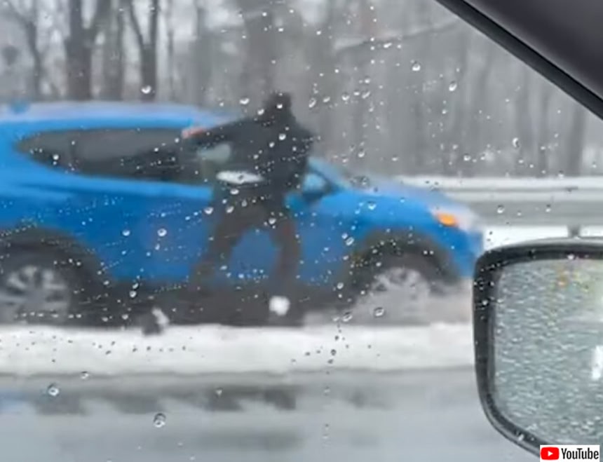 別の車線を走っていた男性ドライバーがそれに気づき、車を脇に止め、身の危険をかえりみず救助に向かった。4車線を全力で走りながら横切り、女性の車に向かっていったのだ。