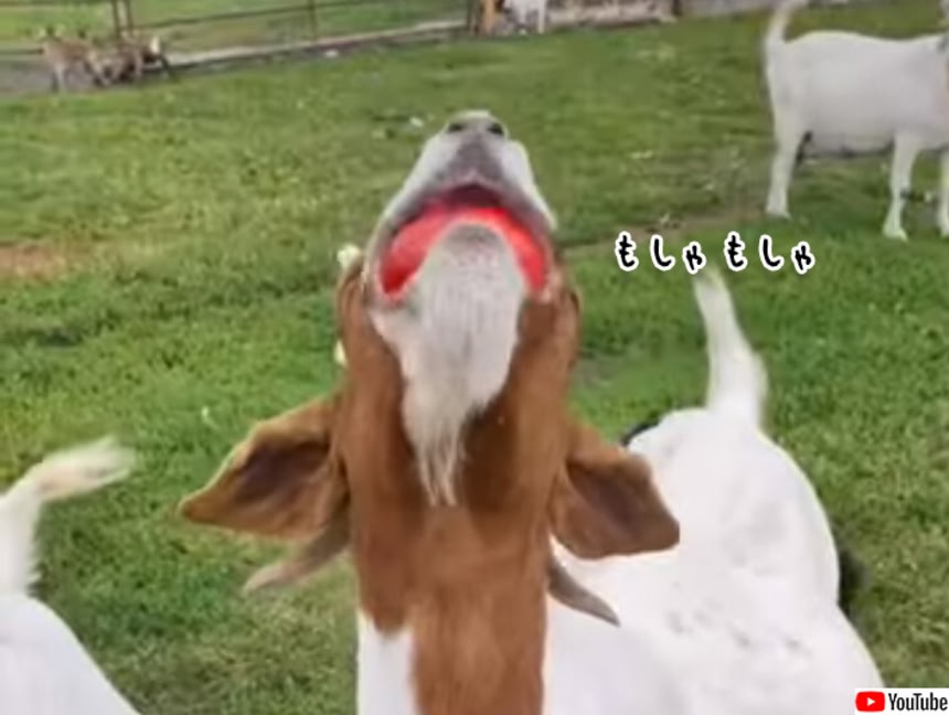 ヤギって上の前歯がないらしいから、丸いトマトは食べにくそうだね。