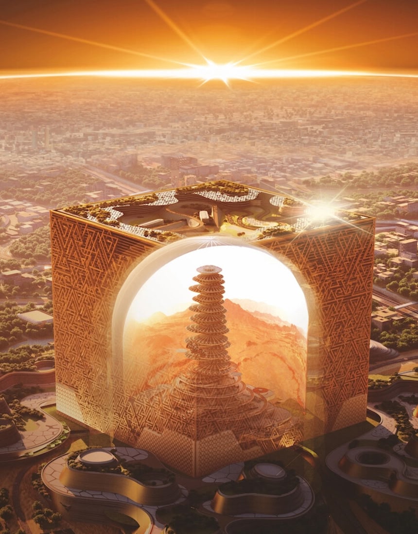 世界最大の没入型アトラクションがいざなう超近未来体験。都心開発プロジェクトの目玉と噂のキューブ型高層ビル「Mukaab(ムカーブ)」とは?