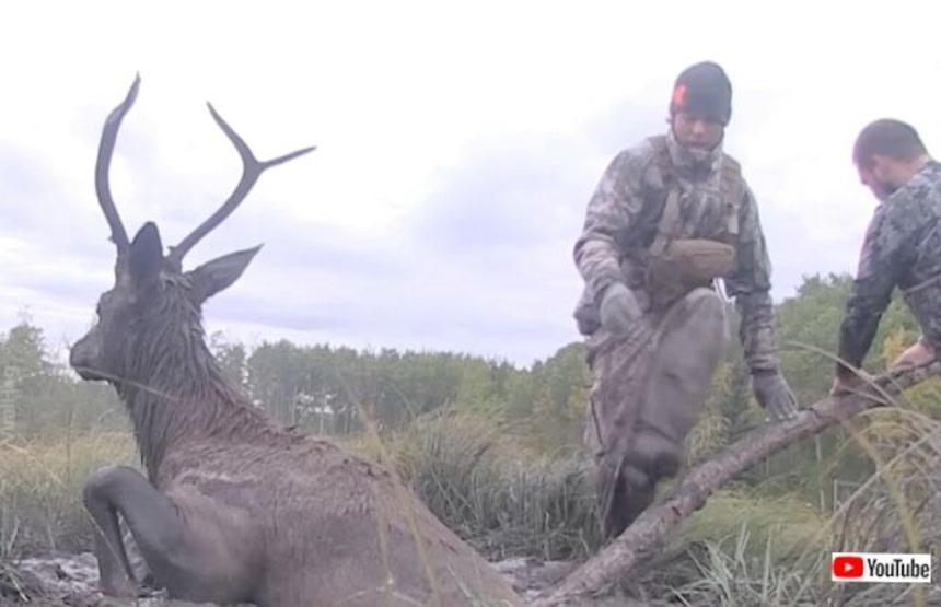 しかし今回届いた映像では、泥にハマって動けなくなった鹿を、ハンターが力を合わせて救い出す光景が見られるんだよ。ぜひみんなにも共有しておきたいので、見てもらえたら嬉しいよ。