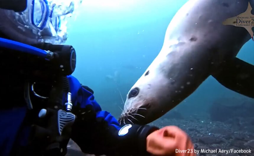 エーリーさんは、水中カメラマンとして5年間にわたり、700本以上の映像を撮影しているが、好奇心旺盛なアシカはダイバーの近くにやってきては、ダイバーが持っているものを何でもつかみ取ろうとするという。