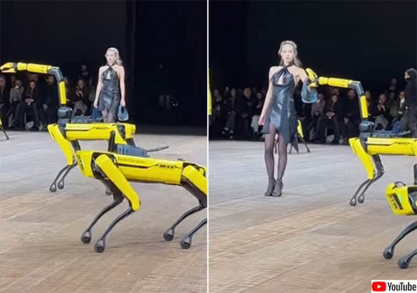 フランス、パリで開催されたファッション ウィークで、「コペルニ」というブランドのショーで、5台のスポットが舞台に立ち、人間モデルのバッグを受け取ったり、服を脱がせたりと、会場を沸かせていたという。