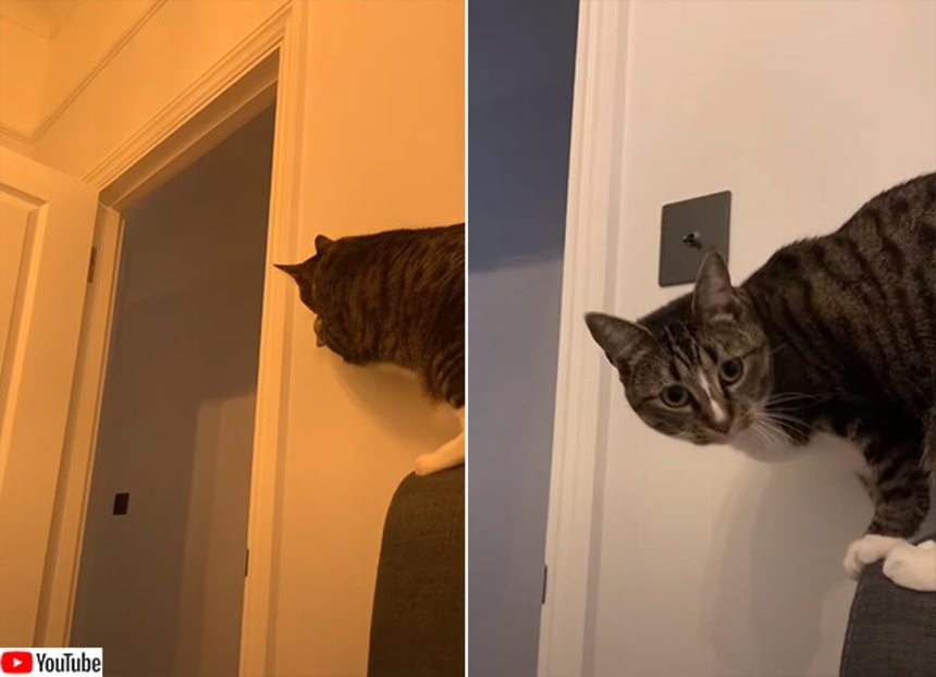 でもって、イギリス、ロンドンで暮らす猫の場合、飼い主は電気の光が弱点であることを知ったようだ。だもんだから、電気のスイッチに肉球を伸ばす。
