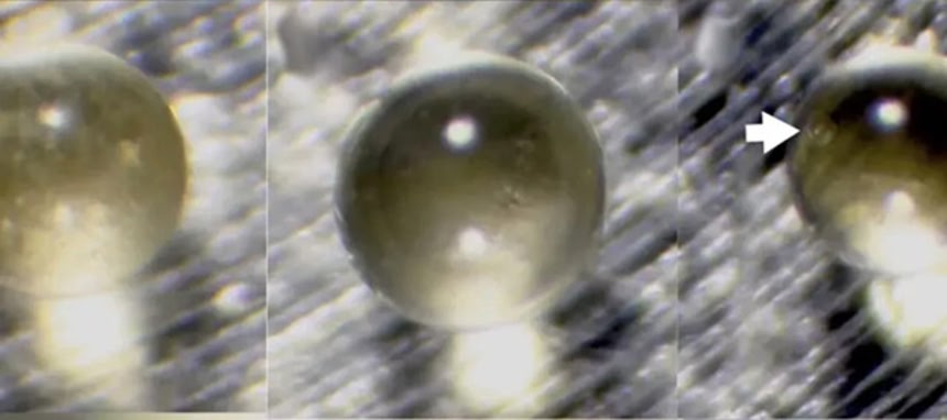 この画像を大きなサイズで見るこれは月に小惑星が衝突したとき、月の内部から噴出した溶けた物質によってできたもので、「衝撃ガラスビーズ」という。ここに水が含まれていたのだ。