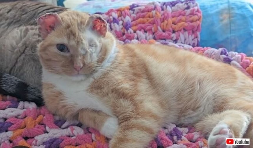 この画像を大きなサイズで見るある日のこと、ジャスミン・ハーギーさんはマッサージセラピストから1枚の写真を見せられた。そこには凍傷で両耳を失い、片目もケガした猫の姿が写っていた。