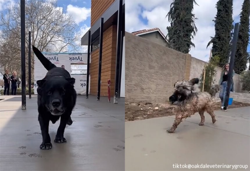 コンクリートが乾いた後、動物病院は再びTikTokで、完成した足跡の様子を見せる動画を公開した。