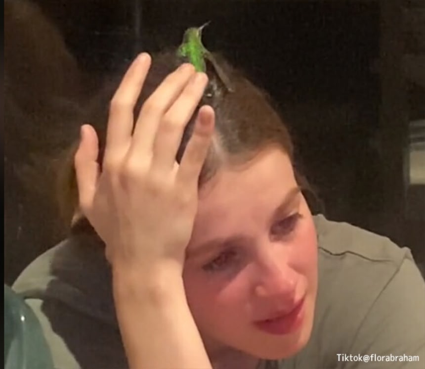 そのハチドリは、女性に近付くとそっと頭の上に止まり、女性から離れようとしない。何かを伝えようとしているように見えたという。