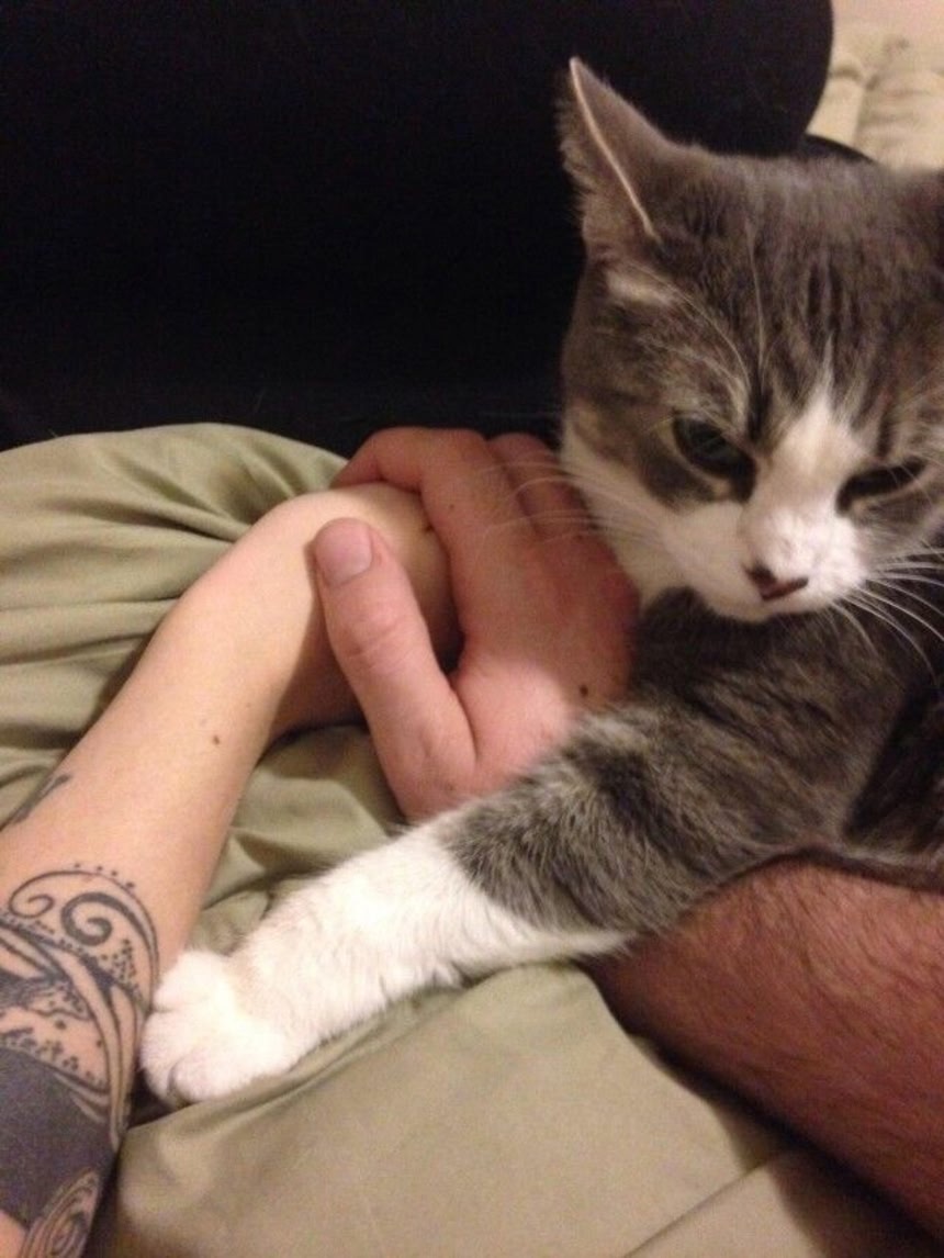 この画像を大きなサイズで見る5. 手をつなぐと焼きもちを焼く猫その2