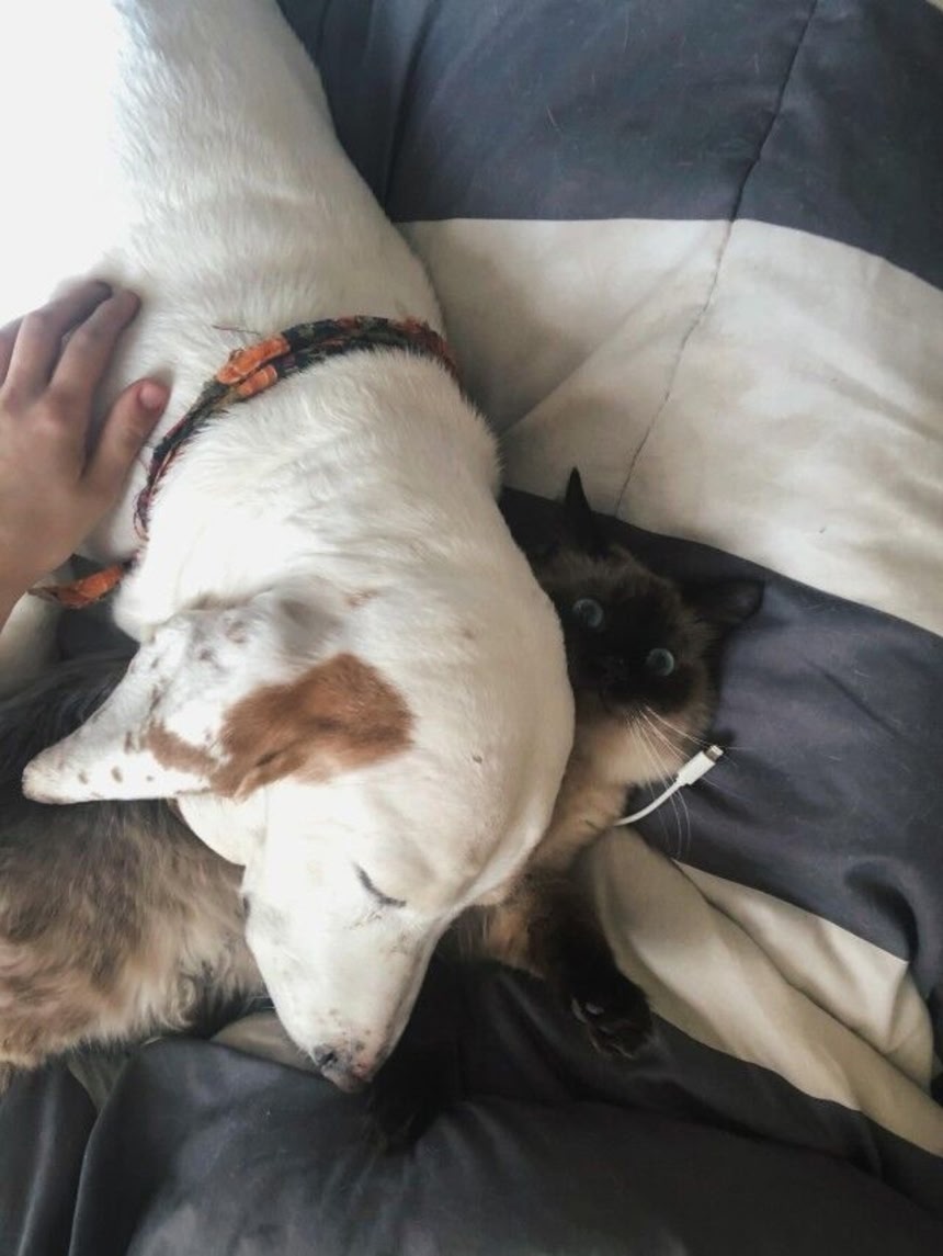 この画像を大きなサイズで見る8. 愛猫をナデナデしていたら愛犬がヤキモチを焼いてきた。