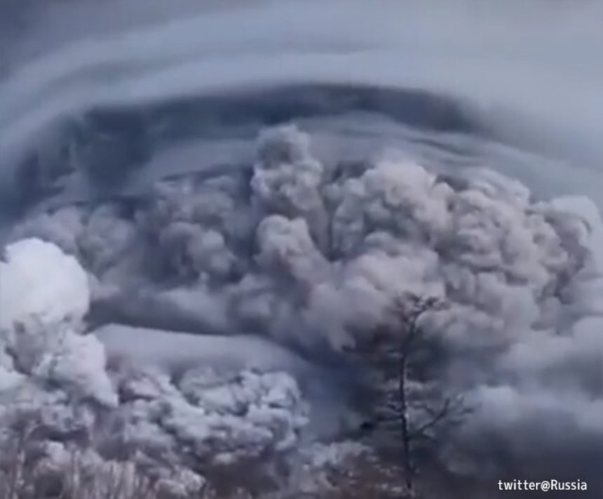 シベルチ火山は半島最大級の活火山で、数年に一度、規模の大きな噴火を繰り返しているという。この動画は噴火時の噴煙が沸き上がる様子を撮影したものだ。
