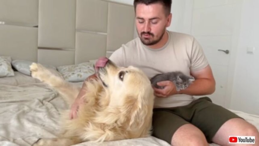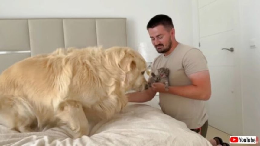 いつだって小さな子たちには無限の愛情を注いでくれる、ゴールデンレトリバーのベイリーくん。今日はご主人が1匹の子猫を連れてやって来たよ。可愛い子猫に大興奮のベイリーくんの様子を見てみよう。