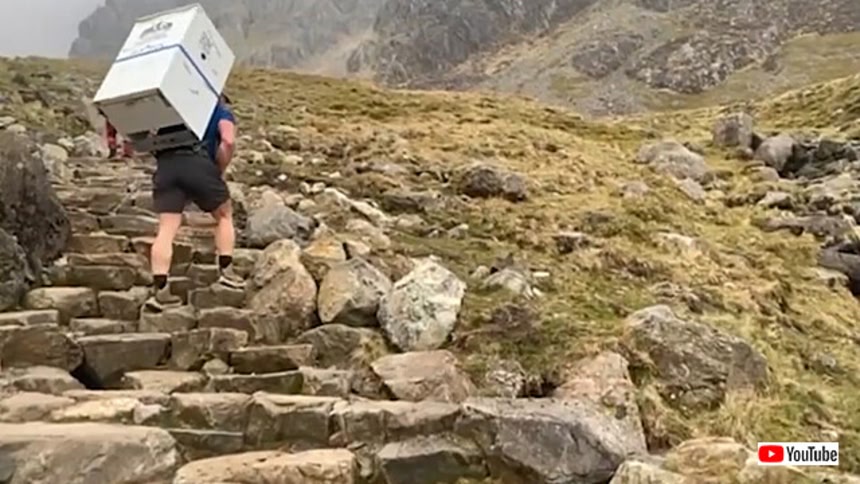 チャリティのためイギリスで冷蔵庫を背負い登山した元兵士