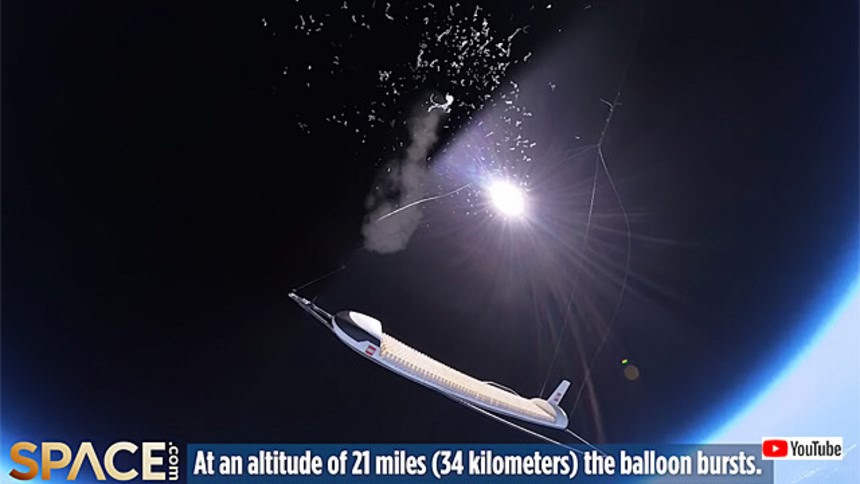 この画像を大きなサイズで見るところがフライト中、高度21マイル(34km)で気球が破裂。