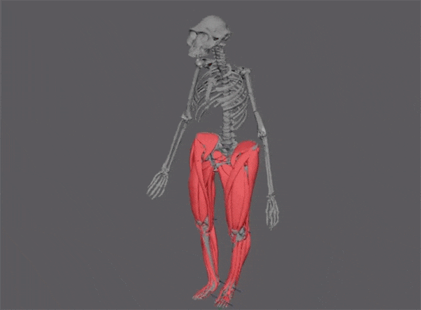 脚と骨盤の筋肉組織を再現したこの映像は、時に樹上生活もしていたと思われるこの人類の祖先が、300万年以上も前に、現代人と同じように完璧に直立歩行していたことを裏付けている。