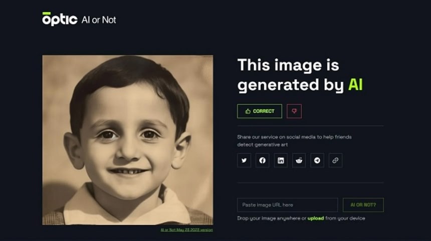 話題の「AI or Not」は、オンライン上で画像を選ぶかURLを入力するだけで、その画像がAI生成か否かを95%の高確率で瞬時に判定してくれる。