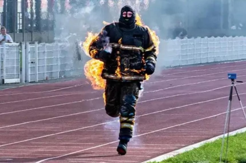 今回、フランスの消防士の男性が、全身を炎に包まれながら無酸素状態で全身燃焼走行の最長距離を達成し、世界新記録を樹立した。