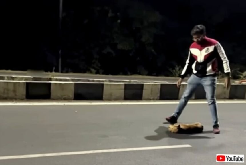 この画像を大きなサイズで見るインドのハイウェイをバイクで走っていた撮影者さんは、反対車線に横たわって、ピクリとも動かない犬を発見した。