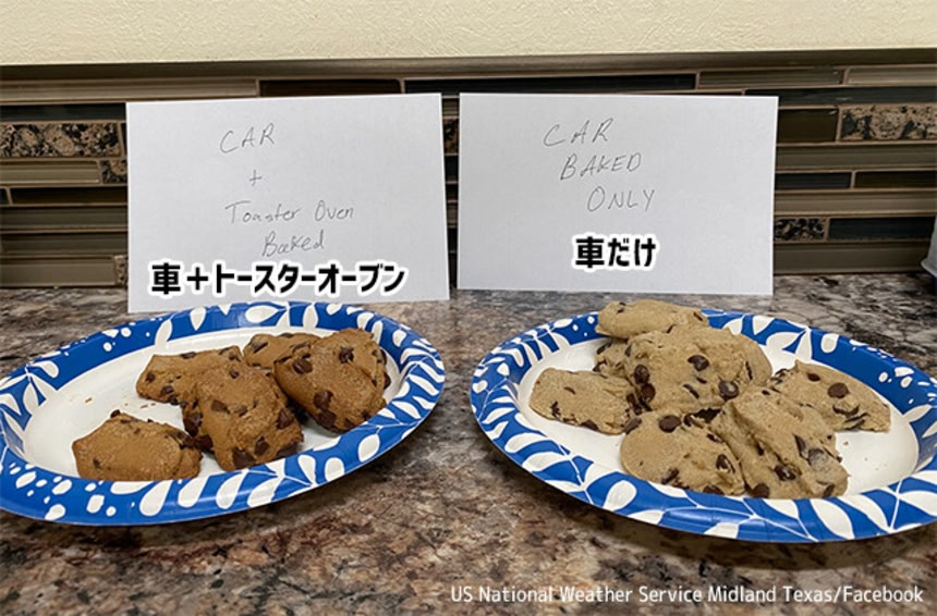 アメリカ、テキサス州で7月20日、国立気象局(NWS)の職員が、記録的な熱波を利用し、車内のダッシュボードでクッキーを焼くという試みを行った。