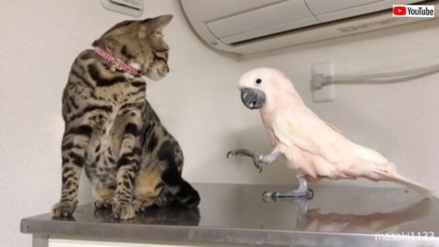 一般的なイメージとして、猫と鳥って相性が悪いような気がする。絶対に仲良くなれないような…? でもそんなことはないみたい。この動画を見てもらえれば、納得できると思うんだよ。