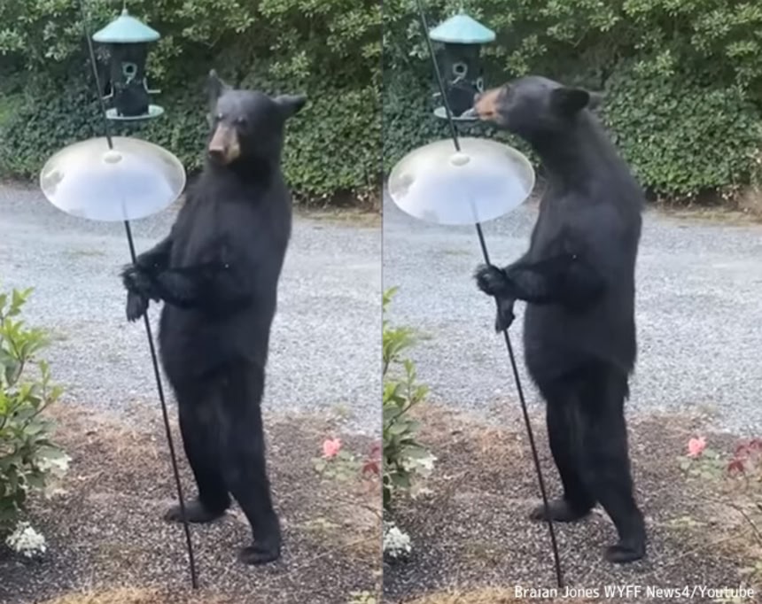 人間が鳥の餌を食べているかと見間違ったというほど、二足立ちが様になっていたのは、真っ黒いクマ、アメリカグマだ。ブライアンさんは我が目を疑って二度見したという。
