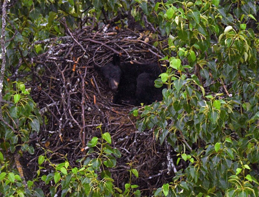 ハクトウワシの巣でちゃっかり昼寝をするクマの姿が発見される