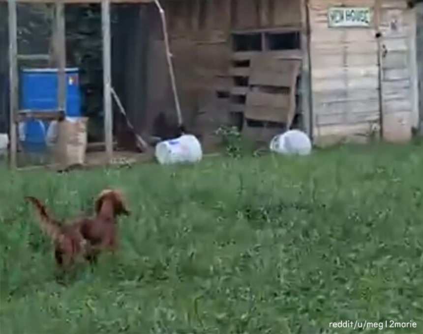 のどかな田舎の広い敷地を持つ家では、大きな庭でペットたちが仲良く遊ぶ光景が良く見られる。海外掲示板に投稿された動画には、緑のじゅうたんを敷き詰めたような庭の芝を走っている茶色い犬の姿が。