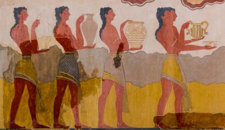 クノッソスのフレスコ画の男性たちは、髪型といいウエストの細さといいてっきり女性だと思ったよ。