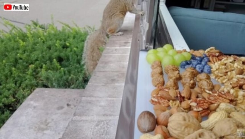 この画像を大きなサイズで見る日本だとあまりなじみがないかもしれないけれど、海外ではリスはごく身近な生き物で、庭や道路でよくその姿を見かけたりする。また、日本と違って野鳥や野生動物にエサをやることもそこまで規制されていないので、リスに餌をやろう!と考える人も多いみたいだ。