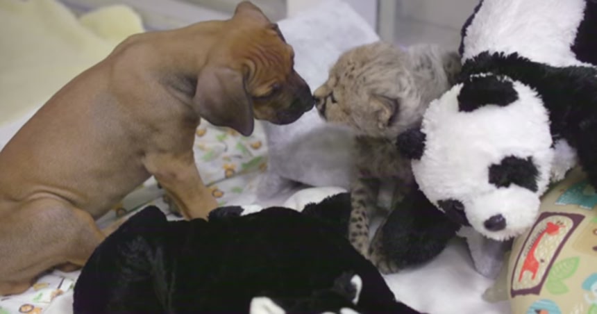 サンディエゴ動物園で生まれたチーターのルークサは、母親に育児放棄され、飼育員の手で育てられることになった。