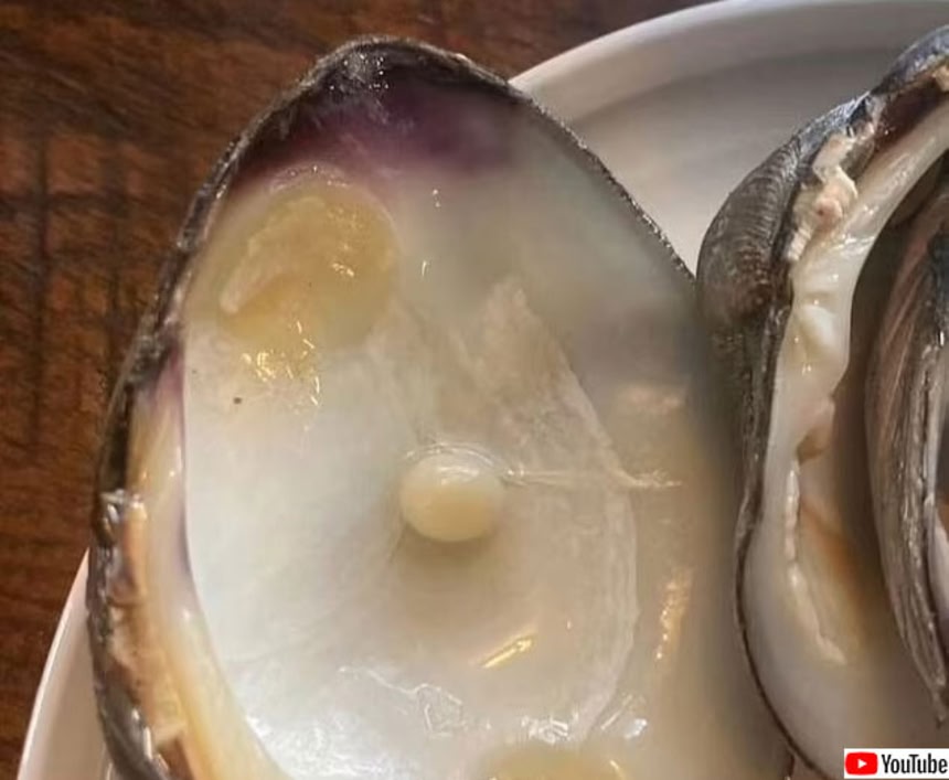 ハマグリ料理の中から真珠を発見