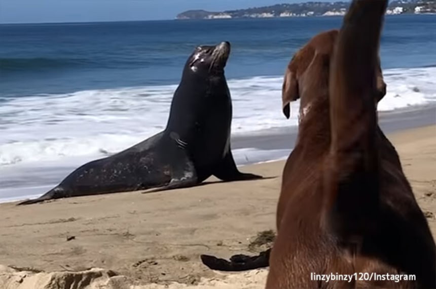アメリカ、カリフォルニア州で、アシカと大親友になった犬がいた。アシカは毎日のように海沿いに住む犬に会いに来るようになり、犬もアシカと一緒に海で遊ぶのが楽しみだった。