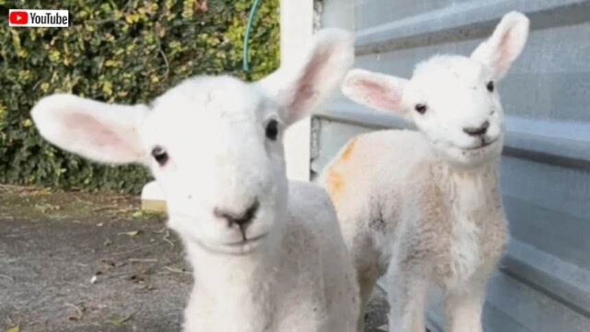 ニュージーランドで大雨が降り続いていたとき、ブレンドンさんは2匹の子羊たちがあちこち走り回っているのに気がついた。