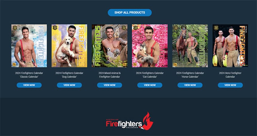 通常通り、オーストラリア消防たちの魅力的なアクションシーンを撮影したカレンダーも販売される。