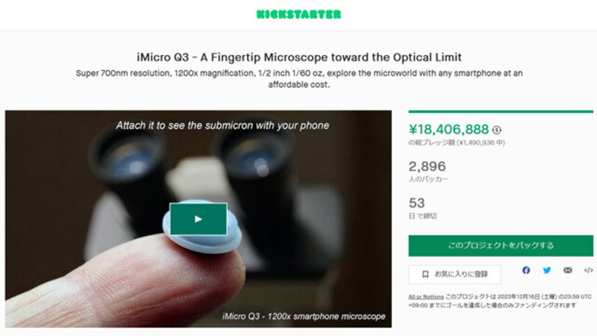 ただこの早割も、すでに720個のうち残り6個となっている。発送は世界各国対応。配達予定日は2024年4月だそうなので興味のある人はキックスターターのiMicro Q3をチェックだ。