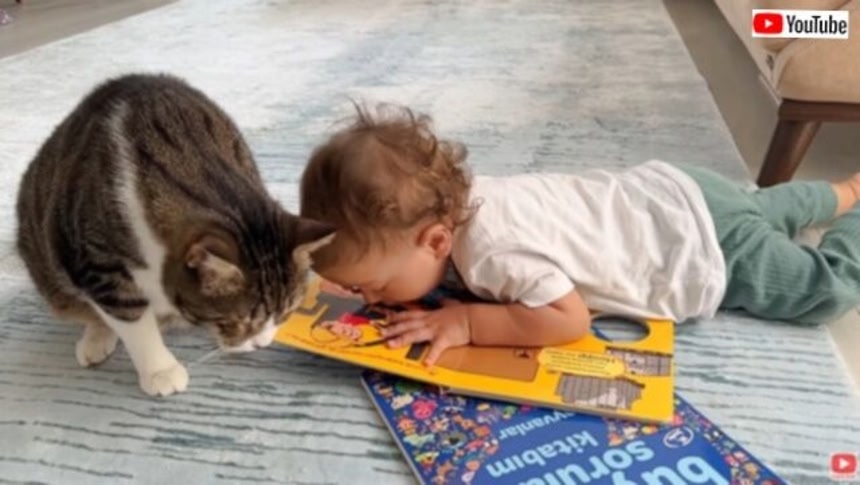 この画像を大きなサイズで見る子供は周りにいる大人の行動を真似しながら、いろいろなことを覚えていく。周りにいるのが猫だったら? 猫のやることを真似っこしちゃっても不思議じゃないよね。
