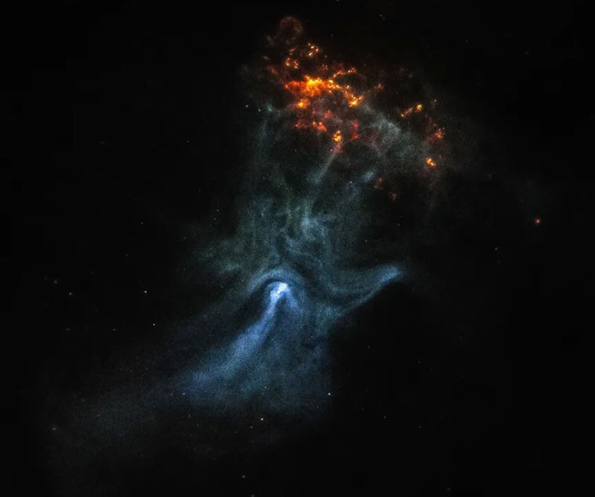 それが地球から1万6000光年離れたパルサー星雲「MSH 15-52」だ(なおパルサー自体は”手のひら”の付け根あたりにある)。
