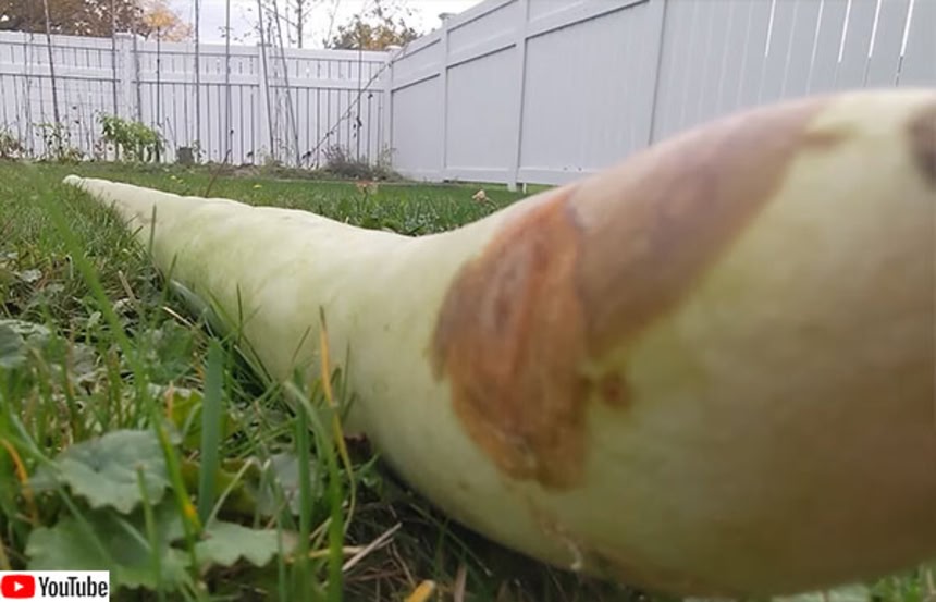 この画像を大きなサイズで見るカナダで驚異的な長さを誇る2.56mのズッキーニが成長し話題を呼んでいる。