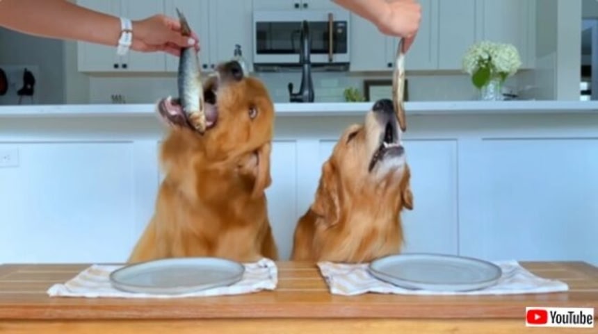 そして次に出てきたのがこのお魚。これはお互い、ひとかけらだって譲る気なし! タッカーくんは口に入れる前から、テーブルに足を乗せてスタンバっていたよ。