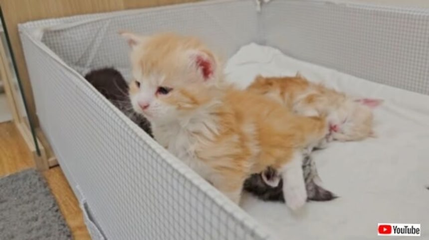 この画像を大きなサイズで見る子猫なら誰もが一度は通った道。そう、産箱の外に出て、自由に冒険がしてみたい! ちょうど半年と少し前に、ルナさんの子猫たちもやらかしてた。