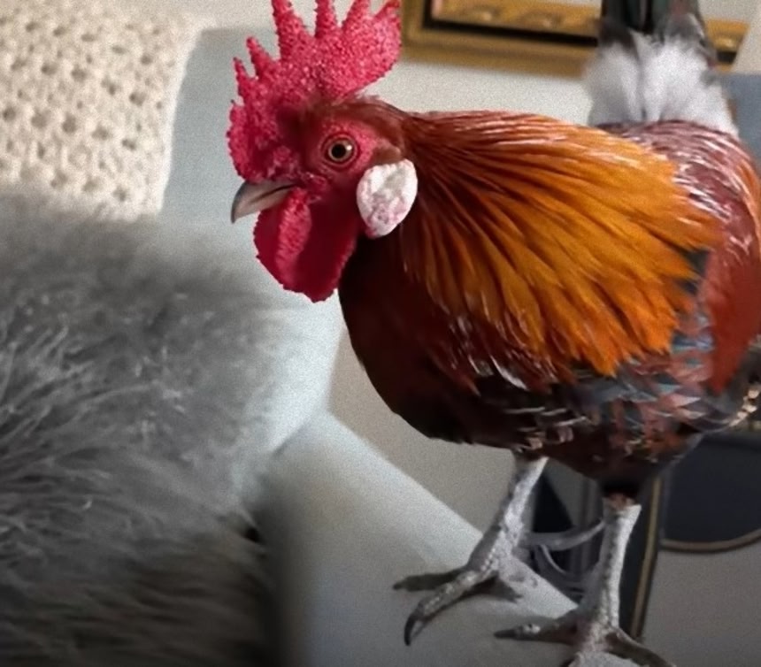 夫婦は雄鶏が彼らに助けを求めていると思い家族に迎え入れた。さらには仲間がいないと寂しいだろうと、数匹のヒナも迎え入れた。