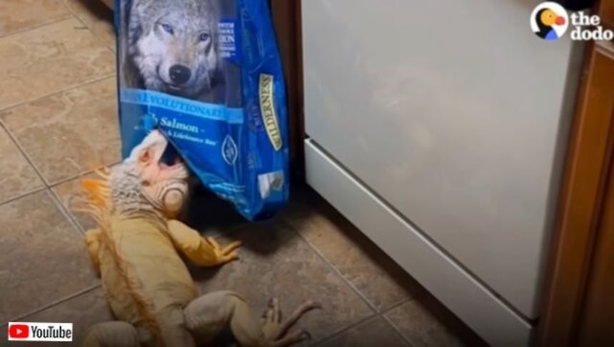 この画像を大きなサイズで見る草食のイグアナは、実はとっても食いしん坊。こと食べ物に関しては抑えが効かないし、飼い主としてもいろいろ大変そうである。