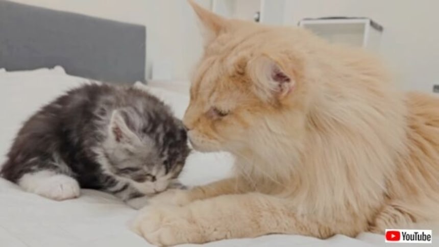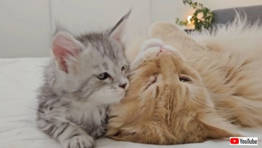 この画像を大きなサイズで見るスウェーデンで暮らすメインクーンファミリーに、子猫たちが加わってから1か月半。家長であるバスター伯父ちゃんが、ベビーシッターとしての本領を発揮する瞬間がやって来た!