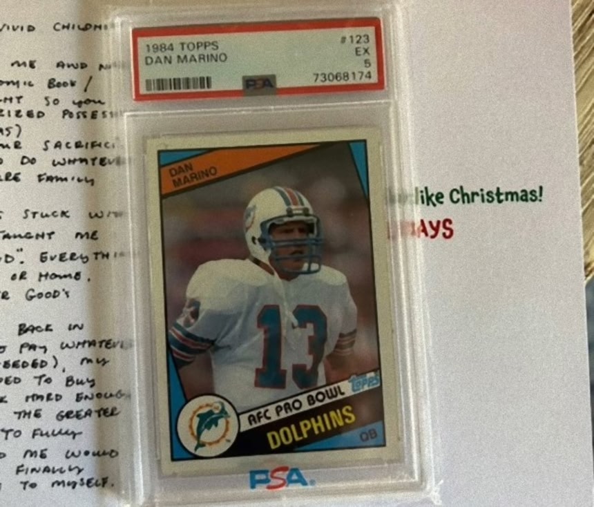 それは、ダン・マリーノ元選手がNFL(プロアメリカンフットボールリーグ)チーム「マイアミ・ドルフィンズ」に入団した最初のシーズンのルーキーカードで、トレーディングカードの中で最も価値が高いとされるものだった。